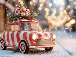 Zima, Świąteczne, Samochód, Grafika AI, Ozdoby