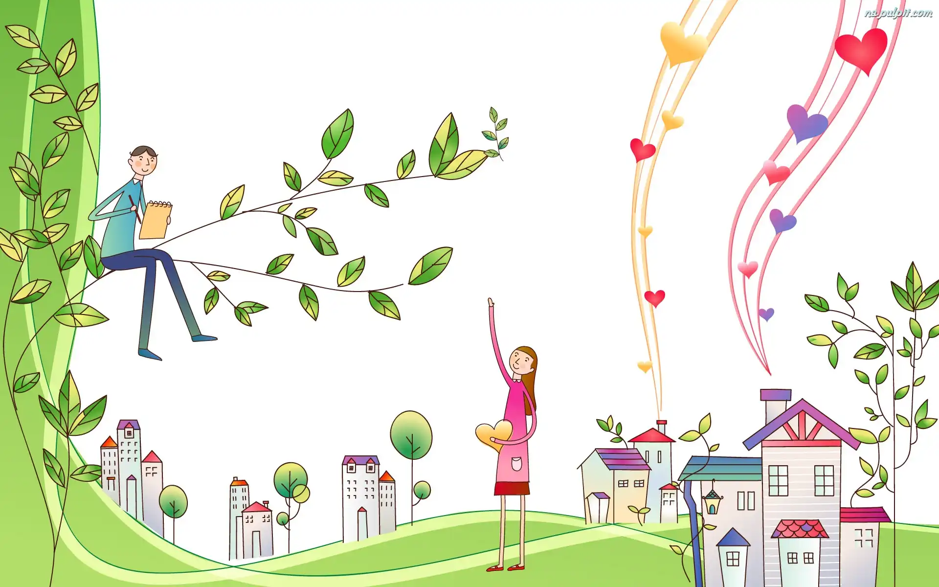 Grafika, Zakochanych, Para, Rozmowa Na Pulpit