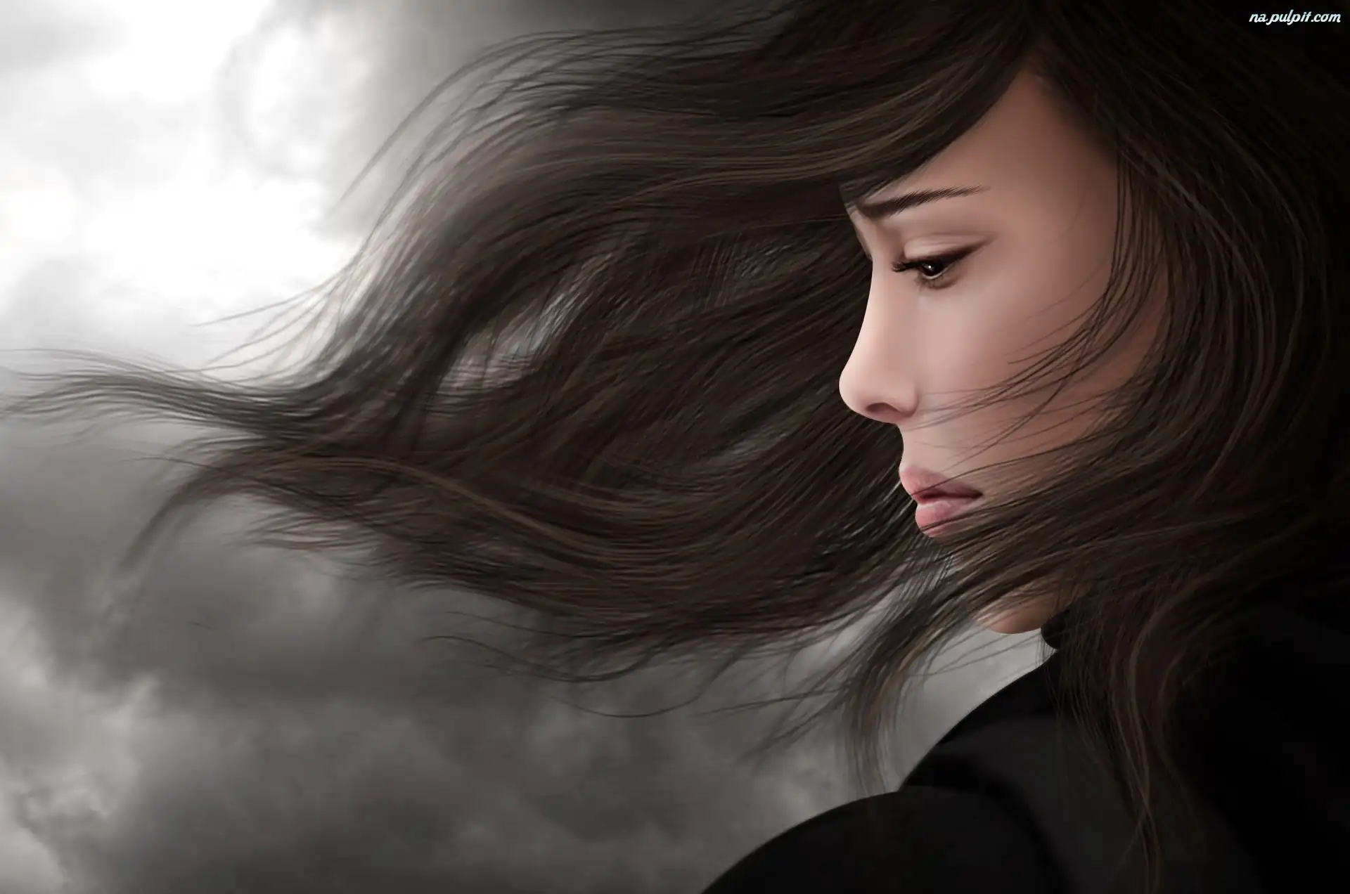 Grafika, Smutna, Piękna, Brunetka Na Pulpit