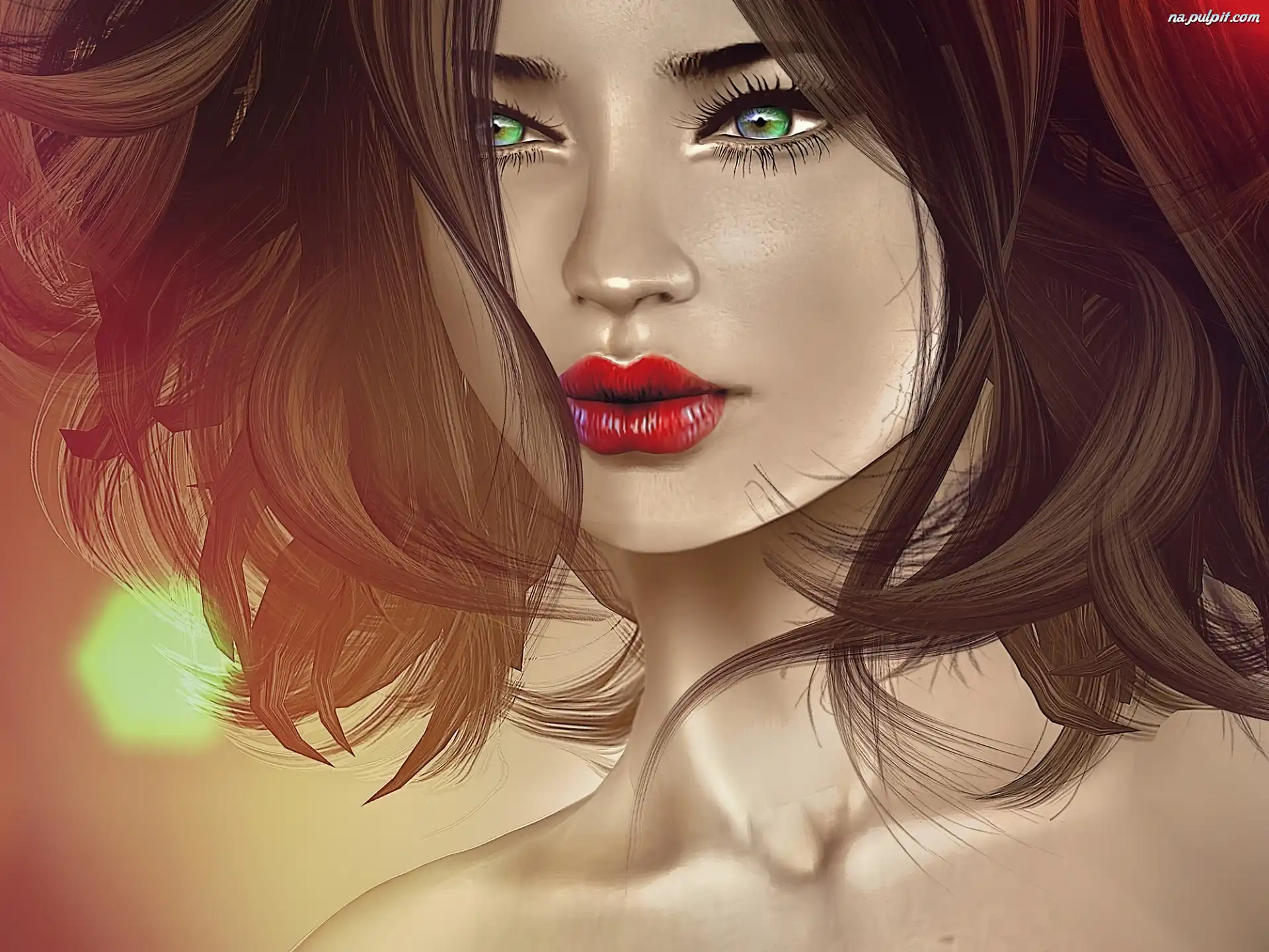 Grafika, Zielone, Twarz, Piękna, Oczy Na Pulpit