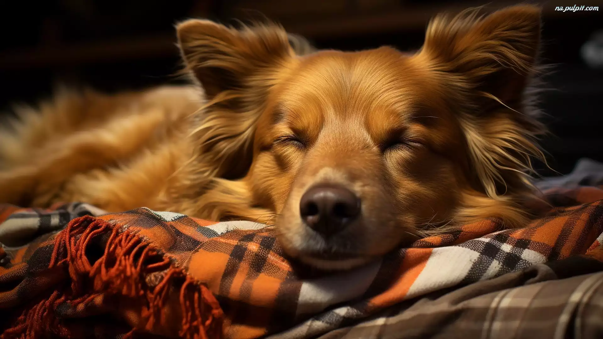 Koc, Brązowy, Śpiący, Grafika AI, Pies Na Pulpit