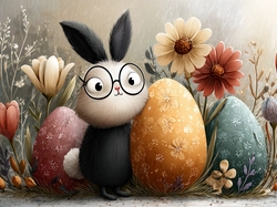 Kwiaty, Wielkanoc, ZajÄ…czek, Grafika AI, Pisanki