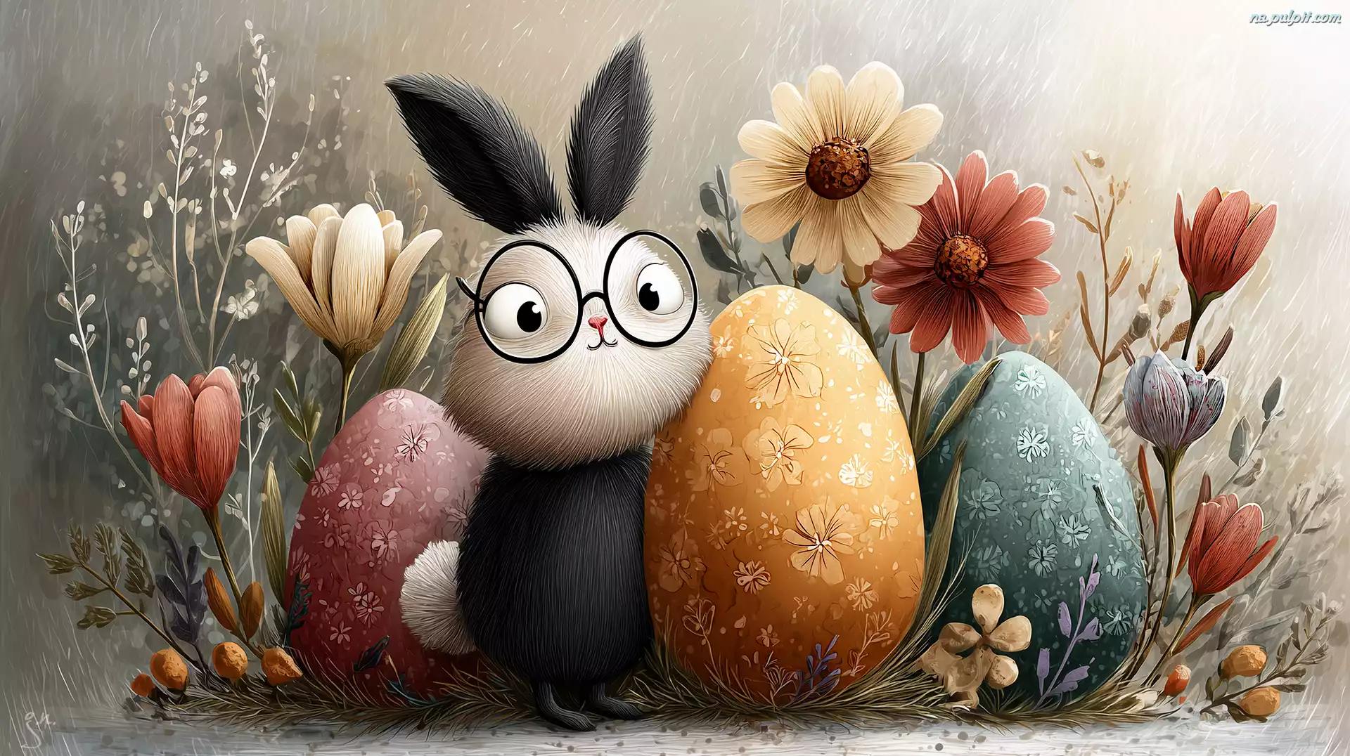 Kwiaty, Wielkanoc, ZajÄ…czek, Grafika AI, Pisanki Na Pulpit