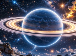 Chmury, Kosmos, Planeta, Grafika, Pierścienie planetarne
