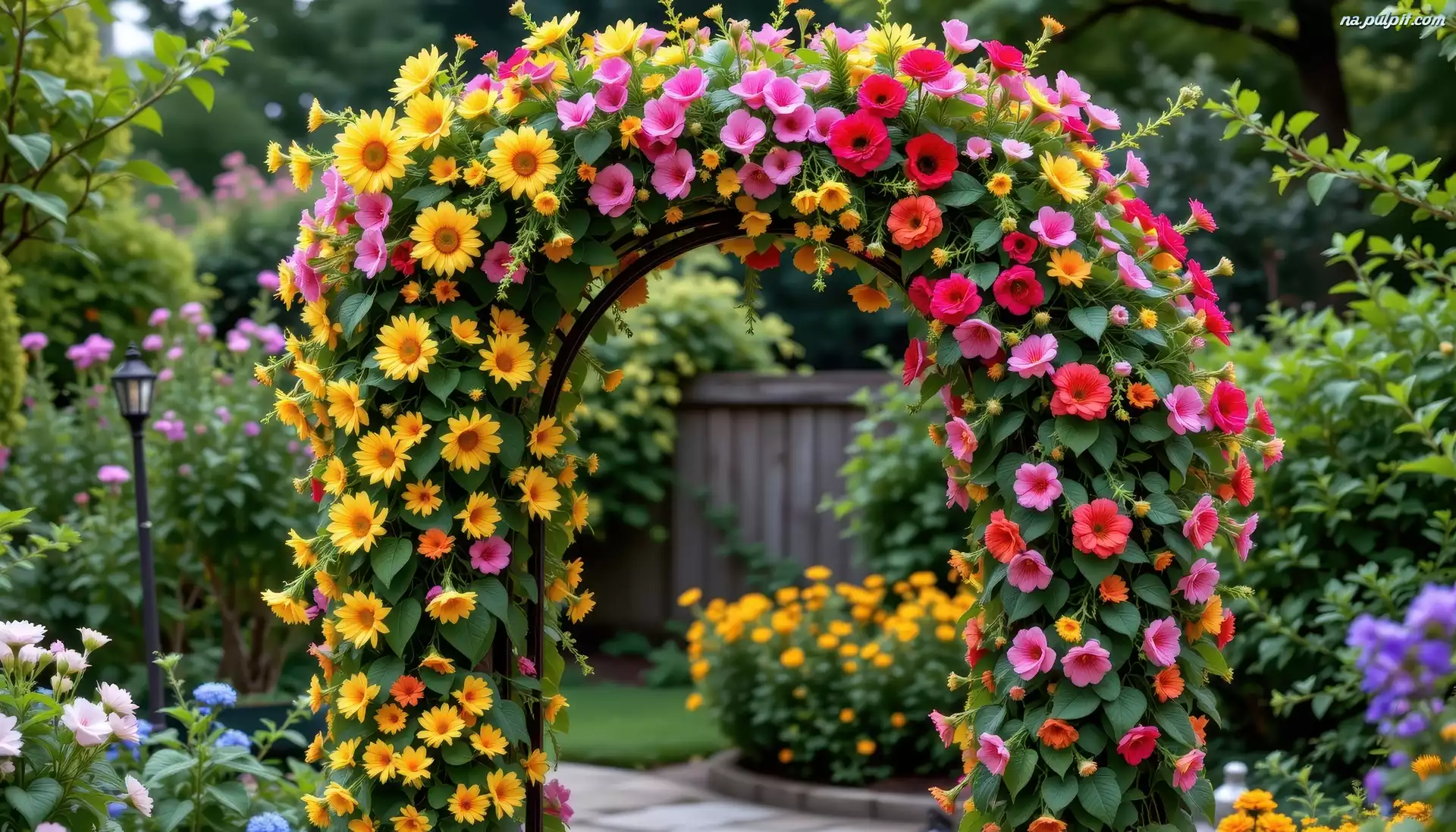 Ogród, Łuk, Kwiaty, Grafika AI, Pnącza Na Pulpit