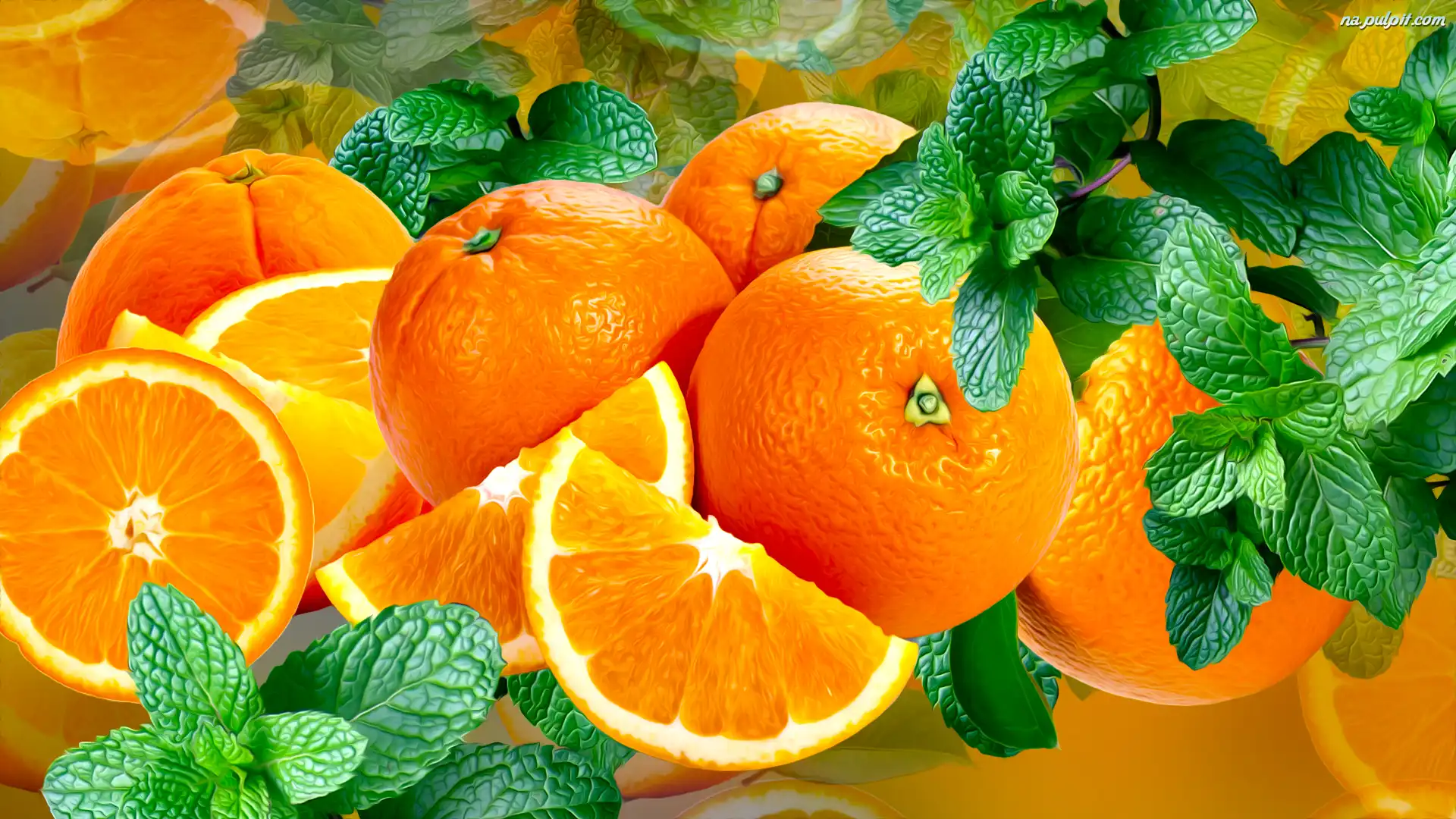 Grafika, Listki, Pomarańcze, Mięta Na Pulpit