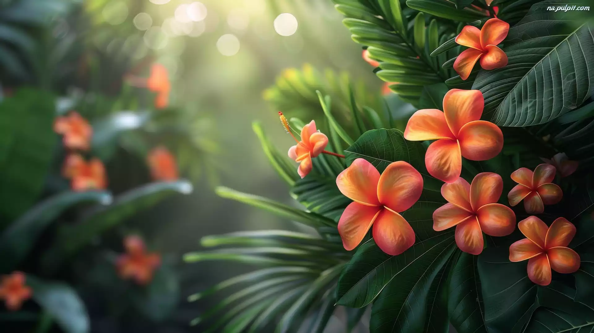 Pomarańczowe, Kwiaty, Liście, Grafika Na Pulpit