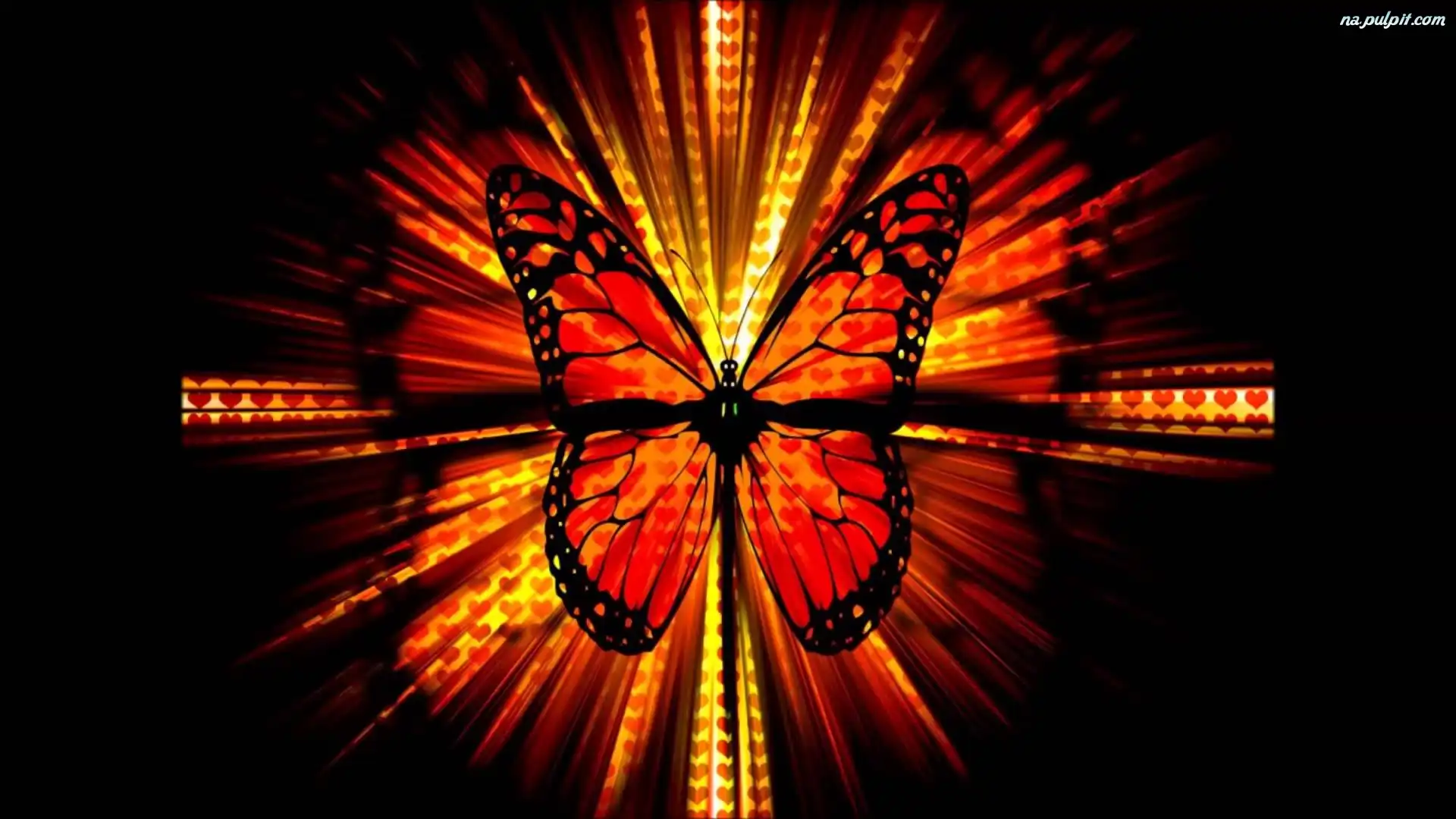 Grafika, Czerwony, Pomarańczowo, Motyl Na Pulpit