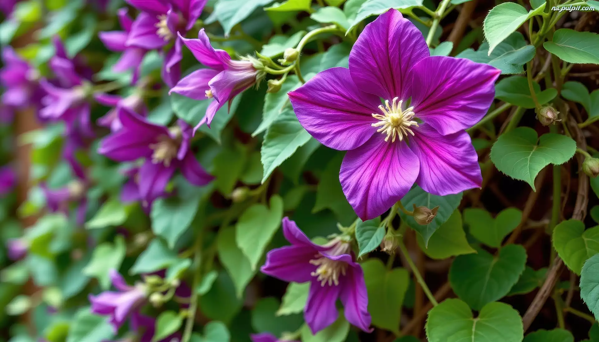 Pnącze, Kwiaty, Fioletowy, Grafika AI, Powojnik Na Pulpit