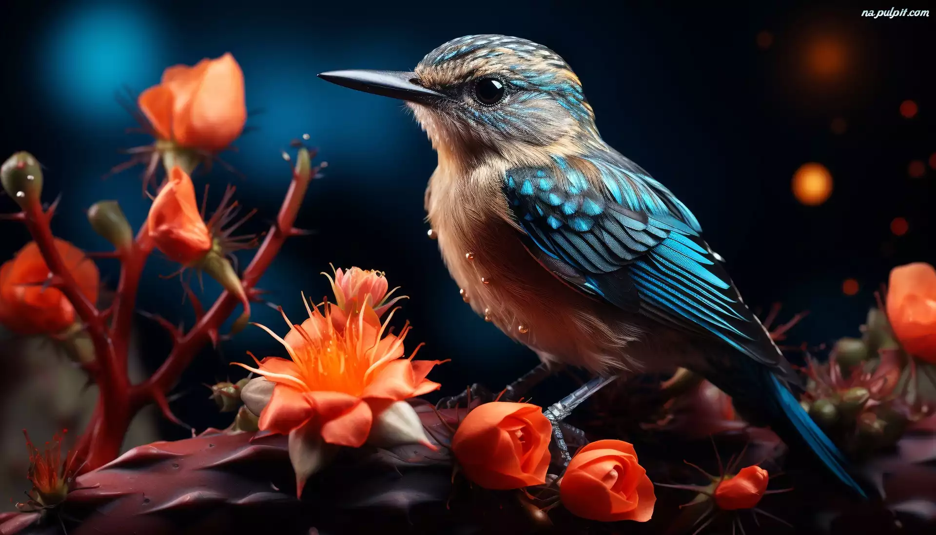 Ptak, Pomarańczowe, Kwiaty, Grafika Na Pulpit