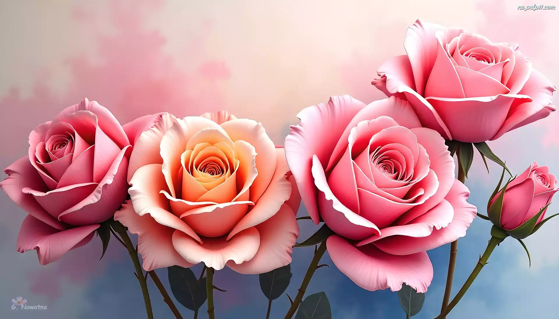 Róże, Kwiaty, Pąk, Grafika