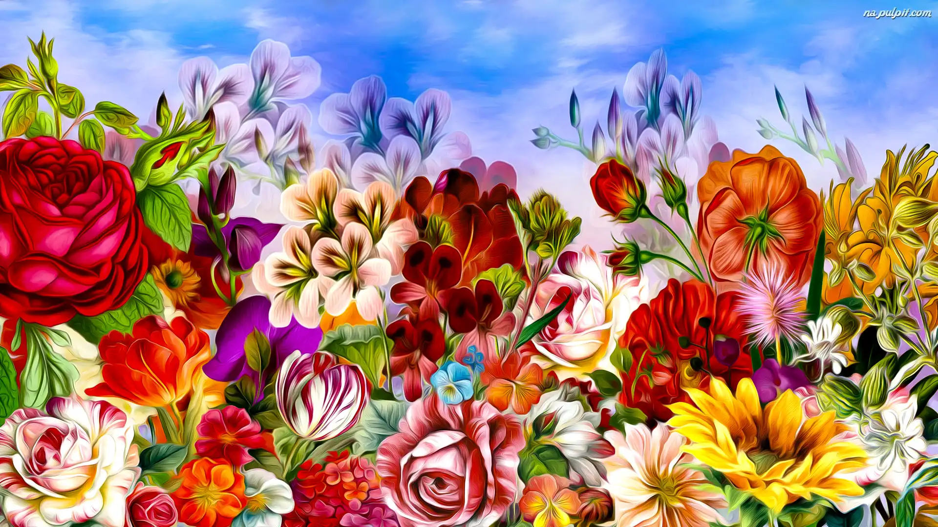 Grafika, Kolorowe, Różne, Kwiaty Na Pulpit