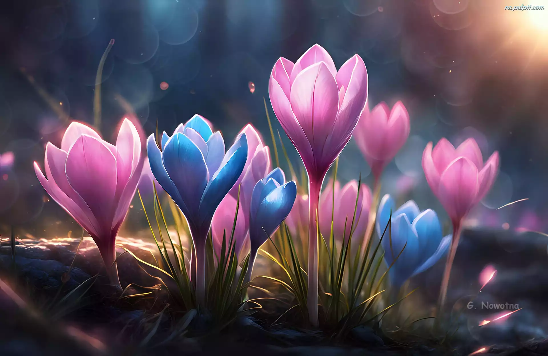 Różowe, Niebieskie, Krokusy, Grafika Na Pulpit
