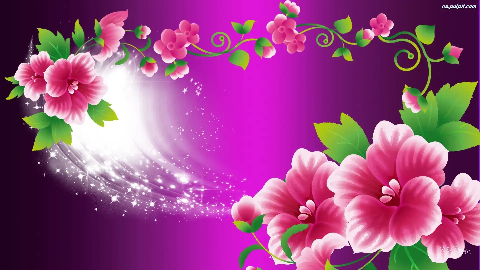Grafika, Fioletowe, Kwiaty, Różowe, Tło Na Pulpit