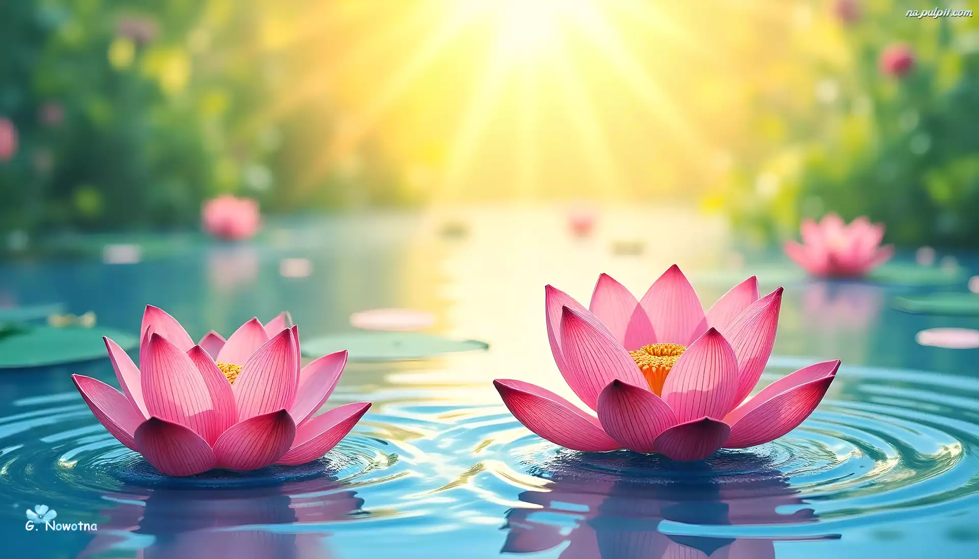 Różowe, Lotosy, Kwiaty, Grafika Na Pulpit