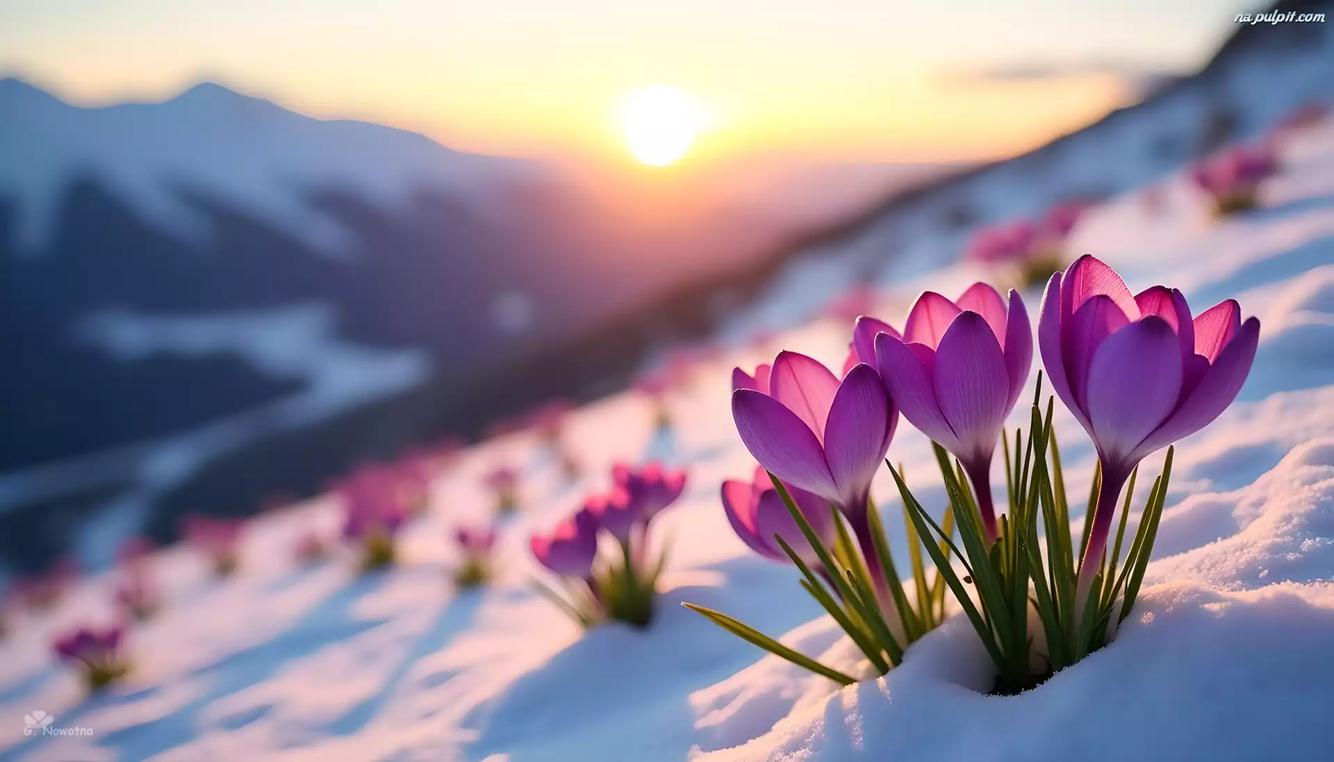 Różowe, Krokusy, Śnieg, Grafika Na Pulpit