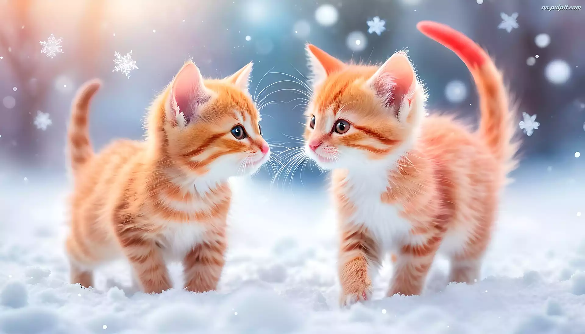 Rude, Koty, Śnieg, Grafika Na Pulpit