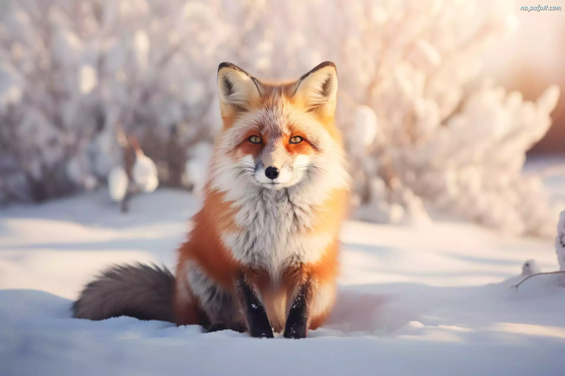 Zima, Rudy, Lis, Grafika AI, Śnieg