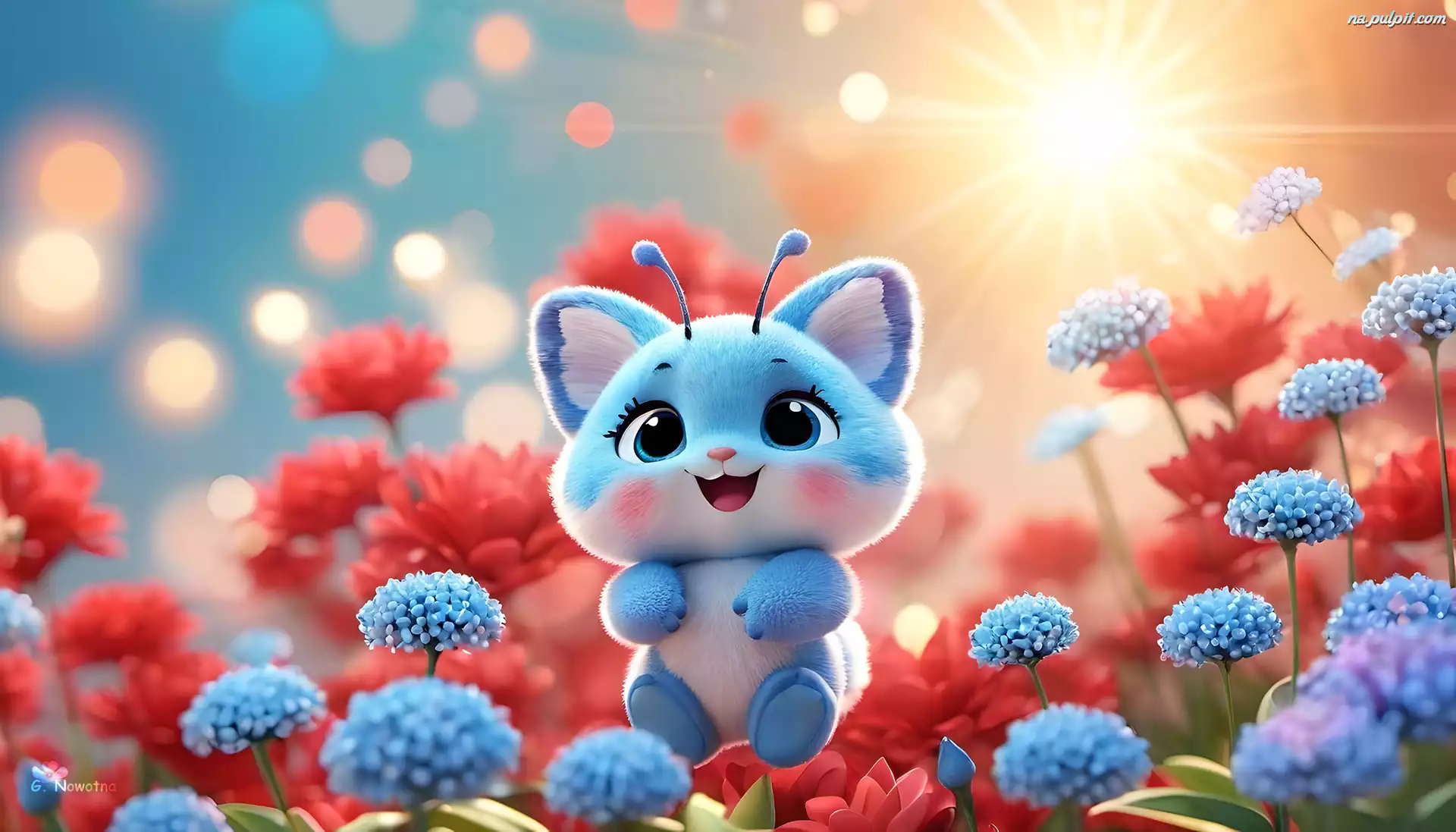 Stworek, Niebieskie, Kwiaty, Grafika Na Pulpit