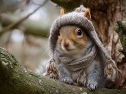 Drzewo, Wiewiórka, Czapka, Grafika AI, Szalik