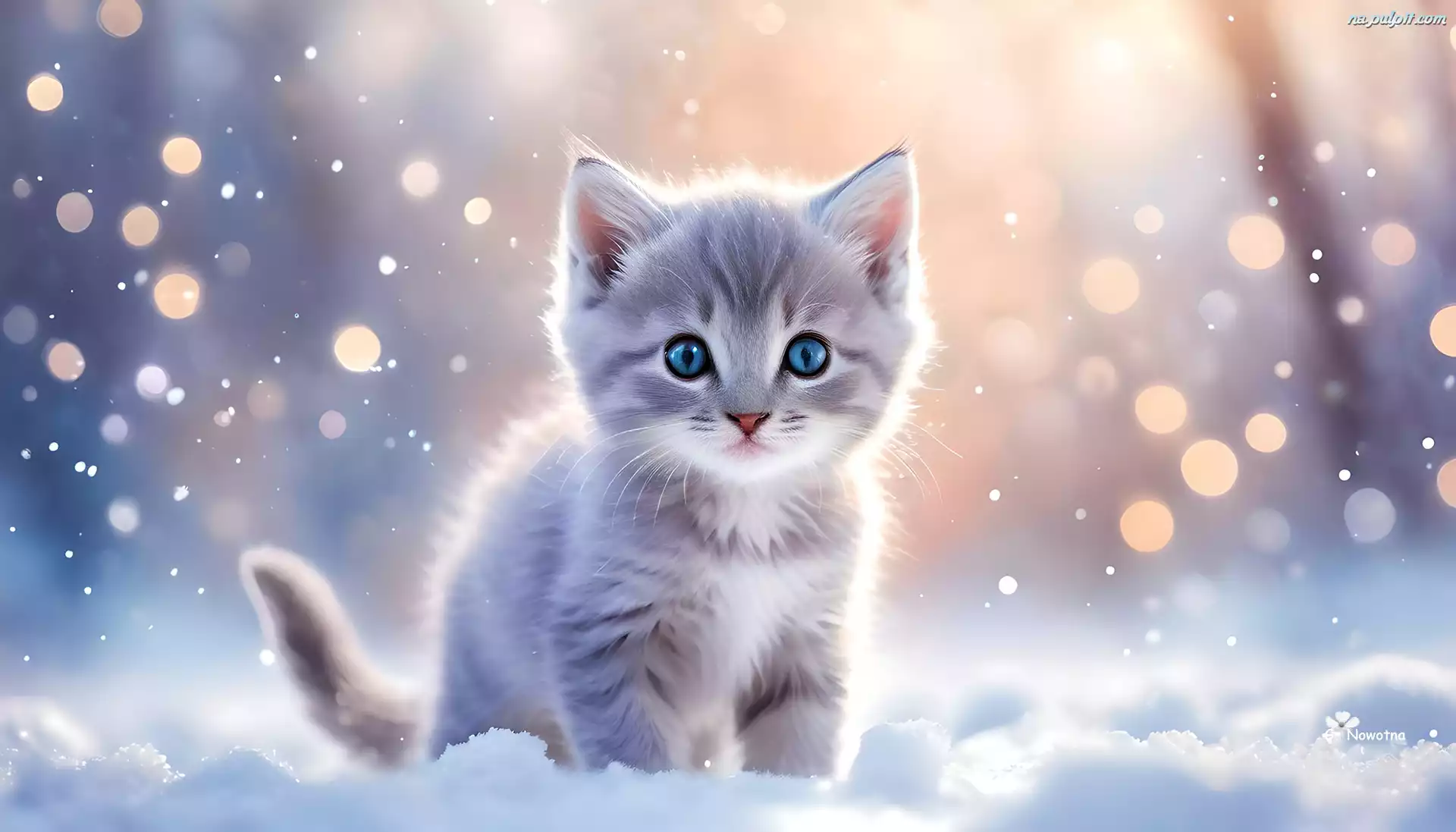 Szary, Kot, Śnieg, Grafika Na Pulpit