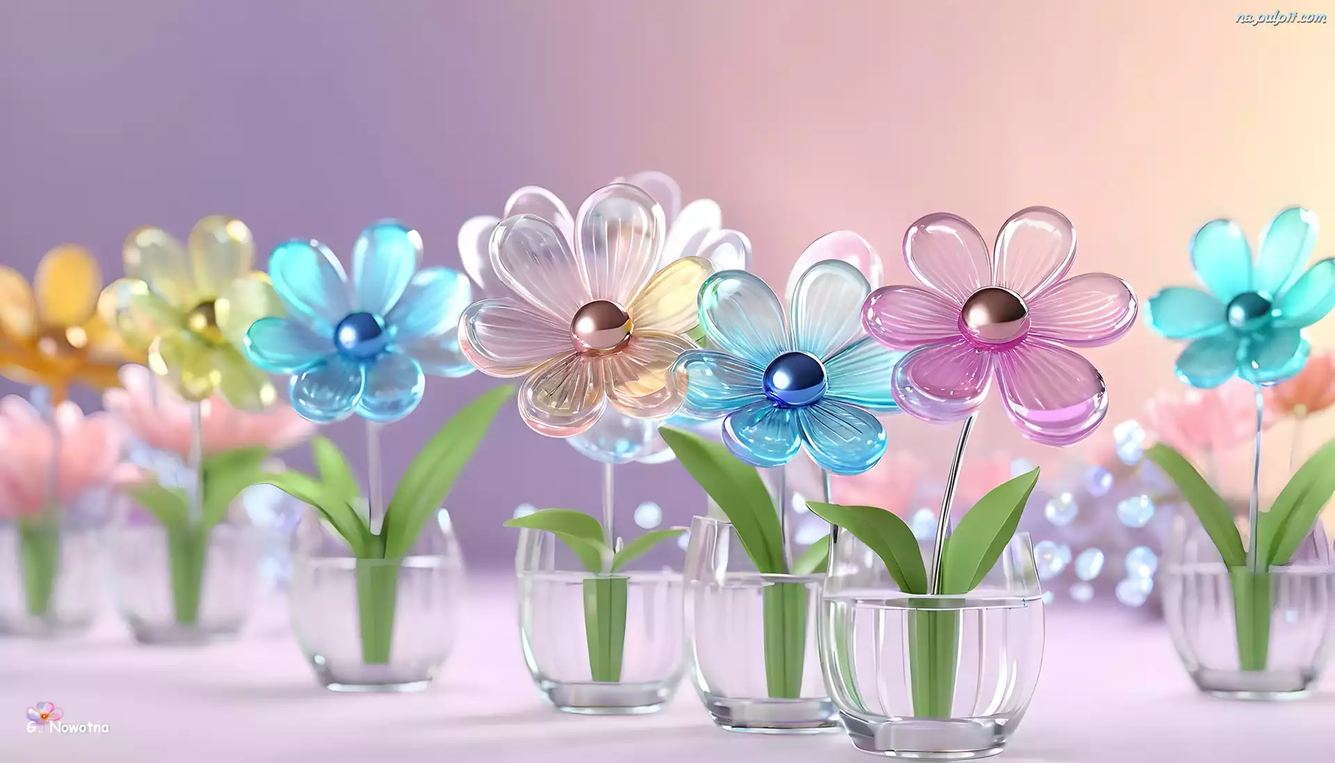 Sztuczne, Szklane, Kwiaty, Grafika Na Pulpit