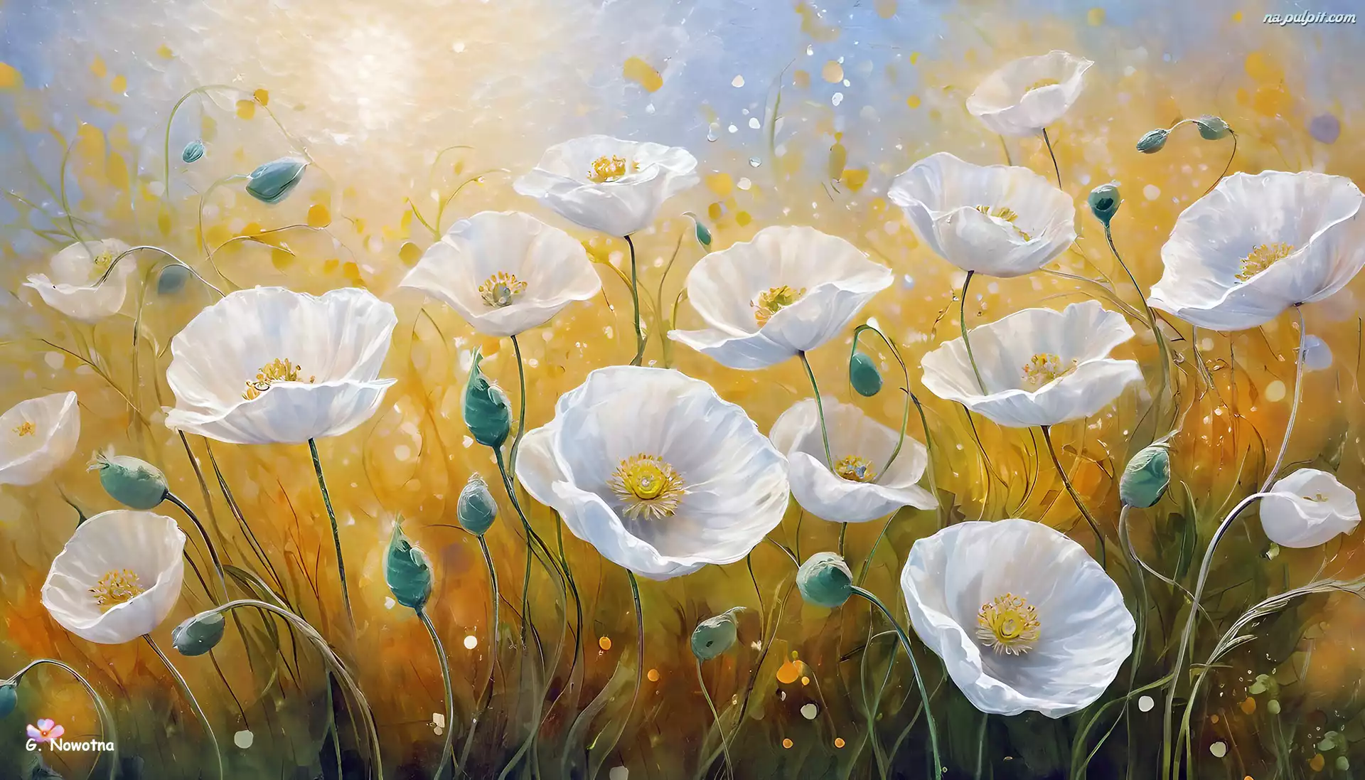Żółte, Białe, Kwiaty, Grafika, Maki, Tło Na Pulpit