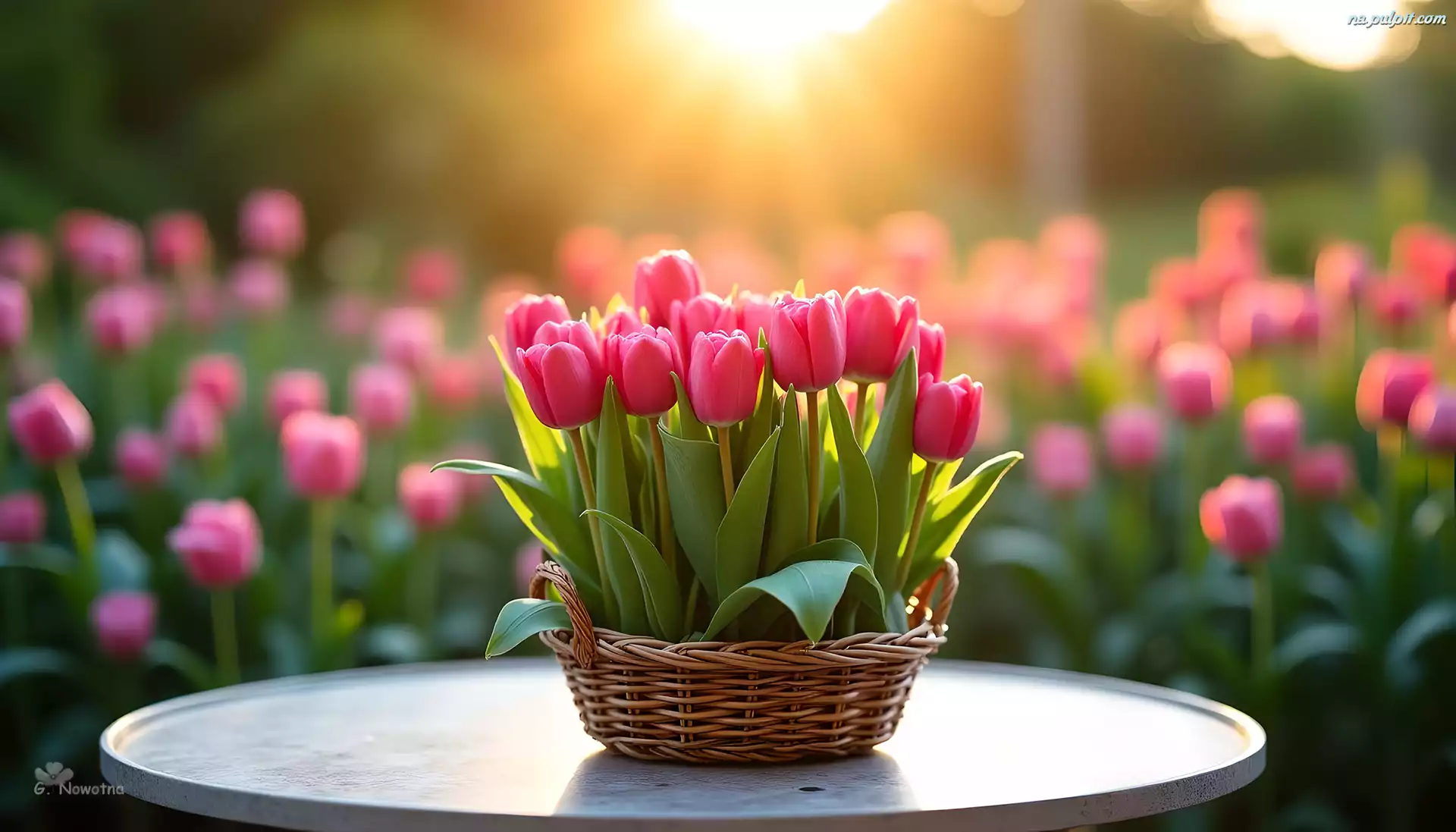 Tulipany, Koszyk, Stolik, Grafika Na Pulpit