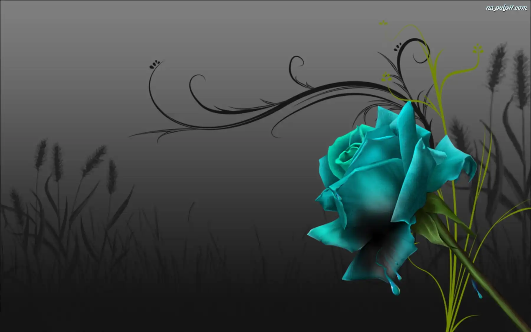Grafika, Kwiat, Turkusowy, Róża Na Pulpit