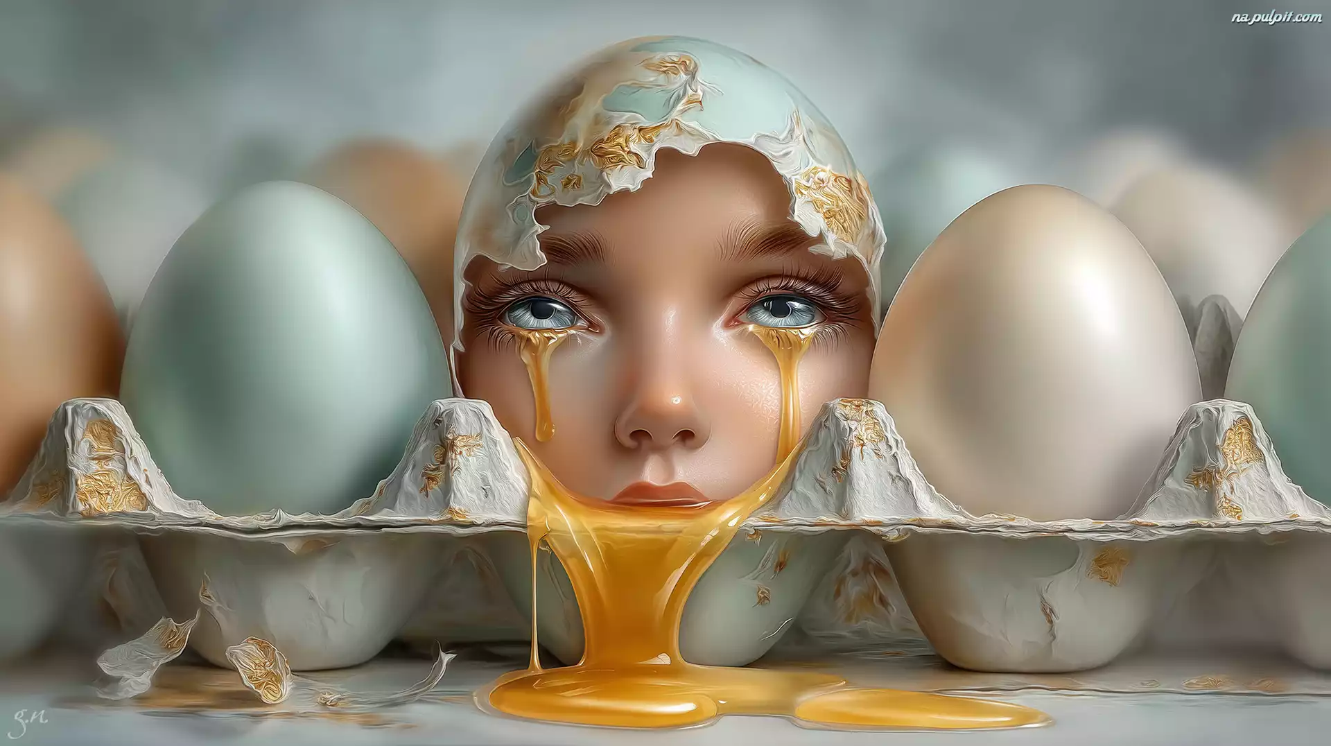 Kobiety, Płaczące, Jajko, Grafika AI, Twarz Na Pulpit