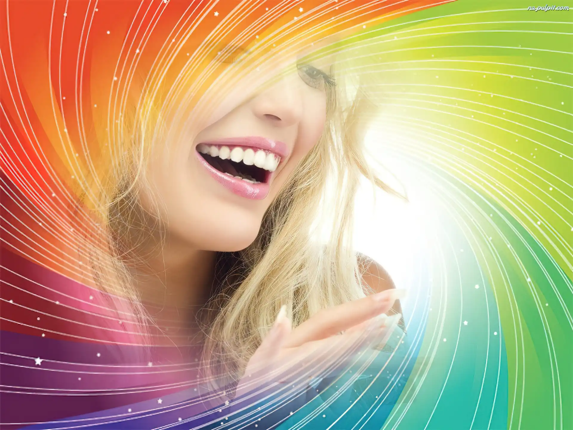 Grafika, Kolorowe, Blondynka, Uśmiechnięta, Smugi Na Pulpit
