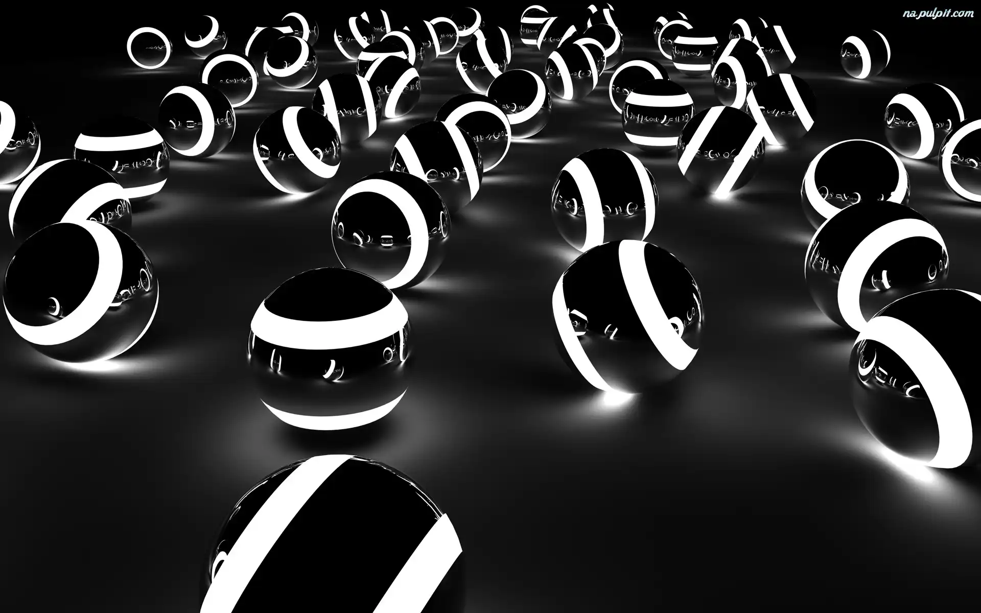 Grafika, Czarno, Kule, Świetliste, Białe Na Pulpit