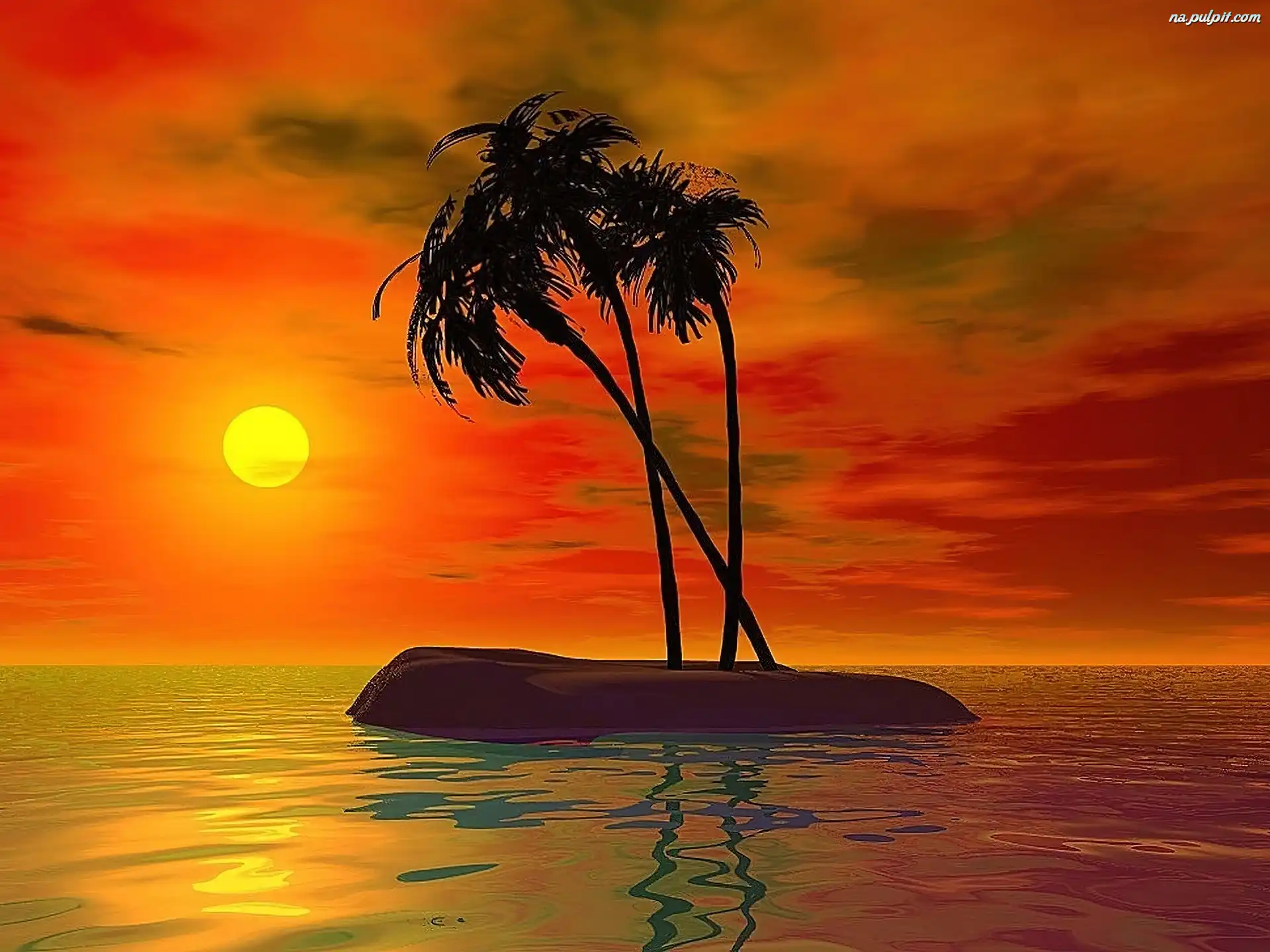 Grafika, Słońce, Palmy, Wyspa, Morze Na Pulpit