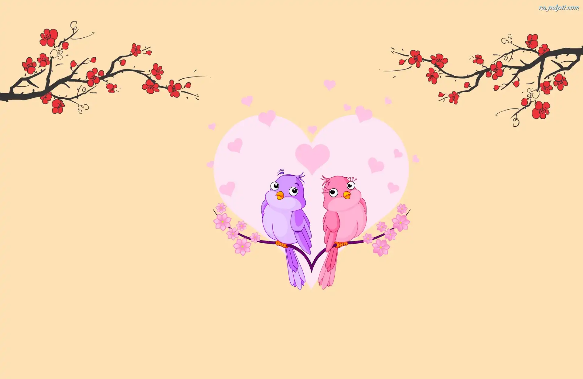 Grafika, Ptaszki, Zakochane, Serca Na Pulpit