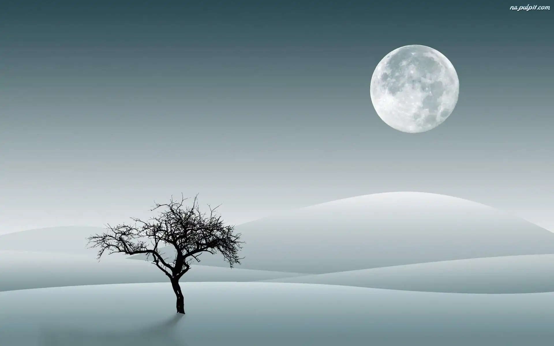 Grafika, Śnieg, Drzewo, Zima, Księżyc