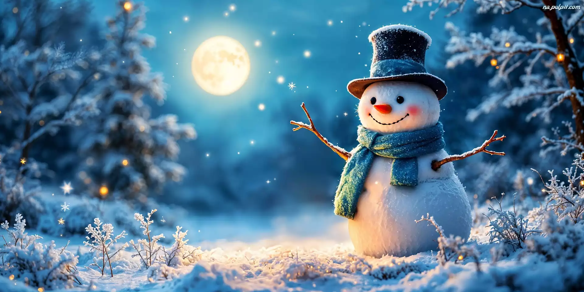 Zima, Bałwan, Noc, Grafika Na Pulpit