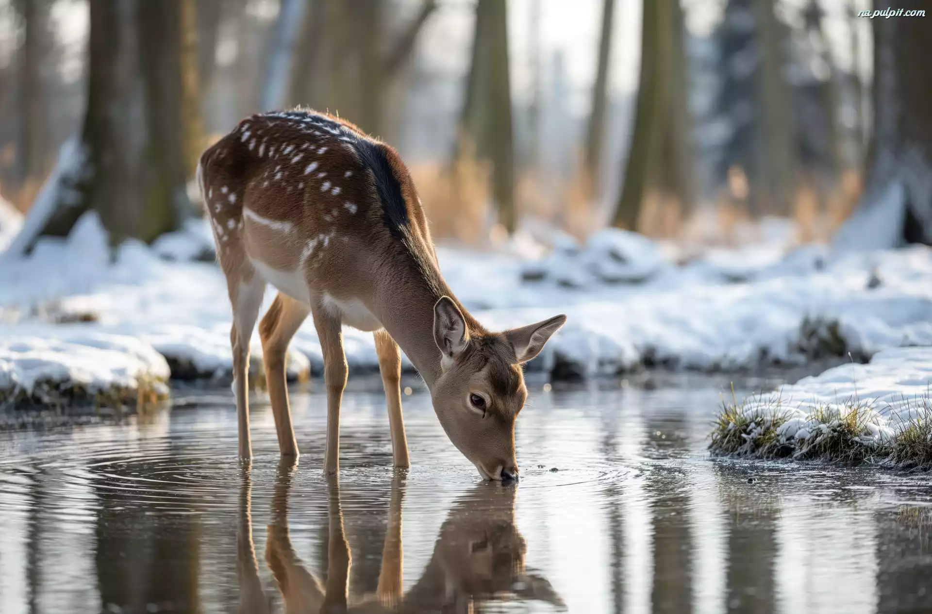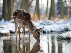 Las, Sarna, Woda, Grafika AI, Zima Na Pulpit