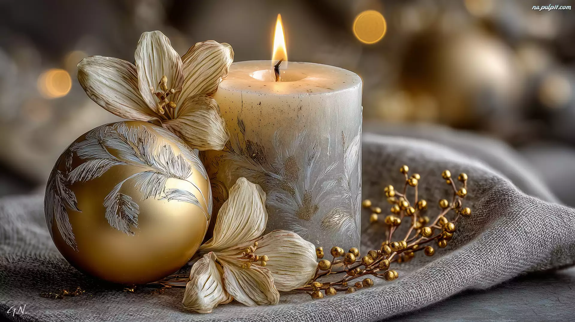 Grafika AI, Kwiaty, Świeca, Boże Narodzenie, Złota, Bombka, Stroik