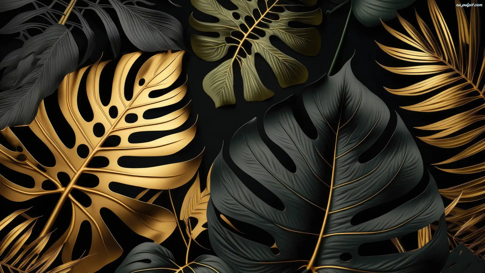 Złote, Zielone, Liście, Grafika Na Pulpit