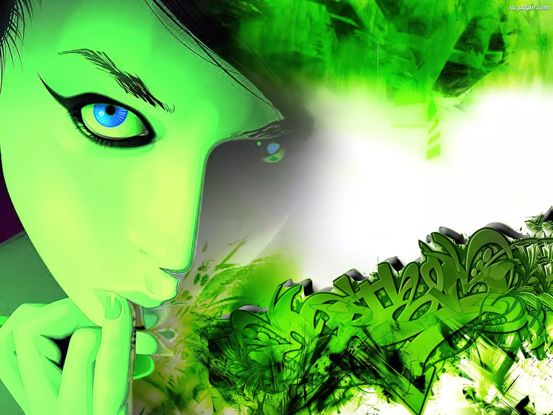 Grafiti, Zielony, Twarz, Kobieta, Szkic Na Pulpit