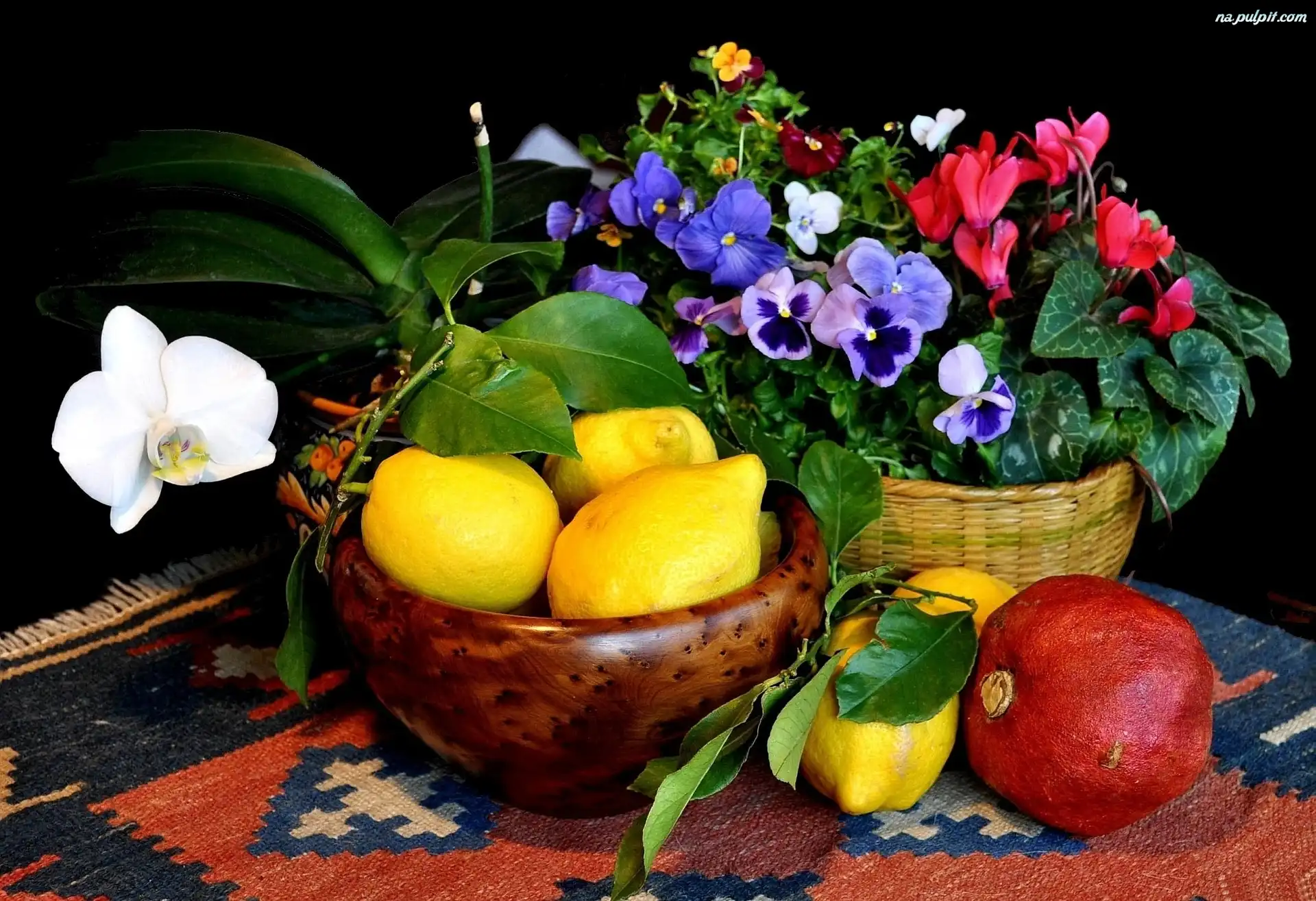 Granat, Kwiaty, Doniczka, Cytryny Na Pulpit
