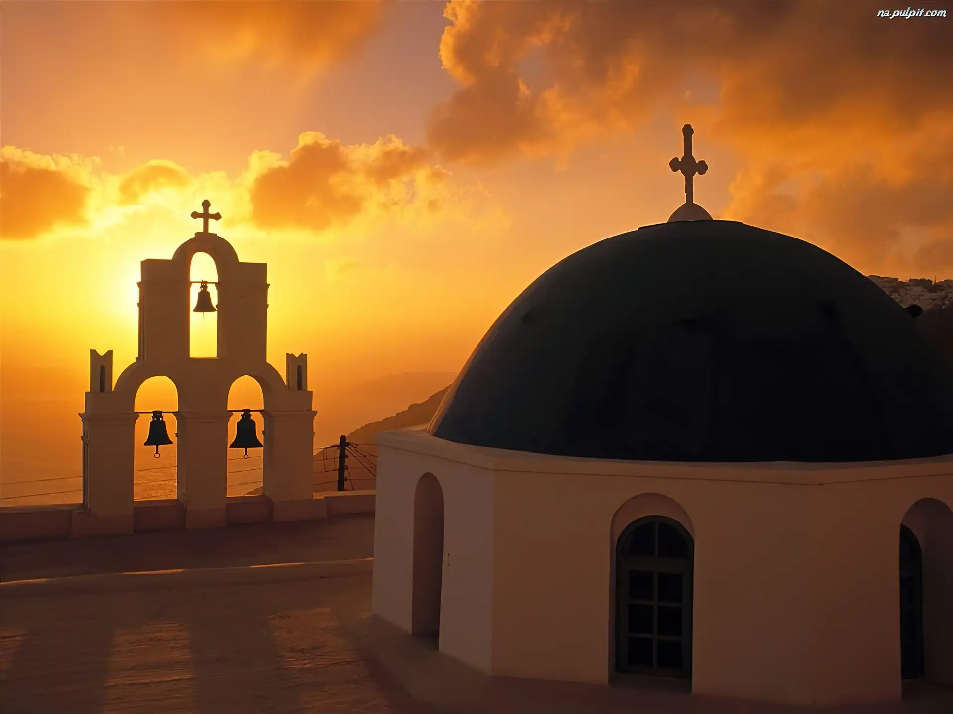 Grecja, Słońca, Zachód, Kościół, Dzwony