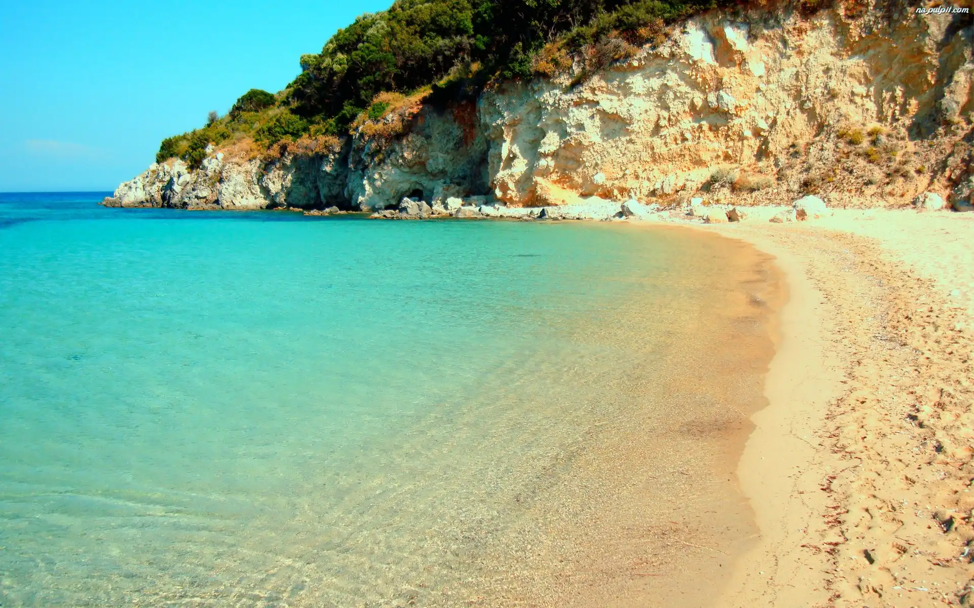 Grecja, Skały, Plaża, Morze, Zakynthos Na Pulpit
