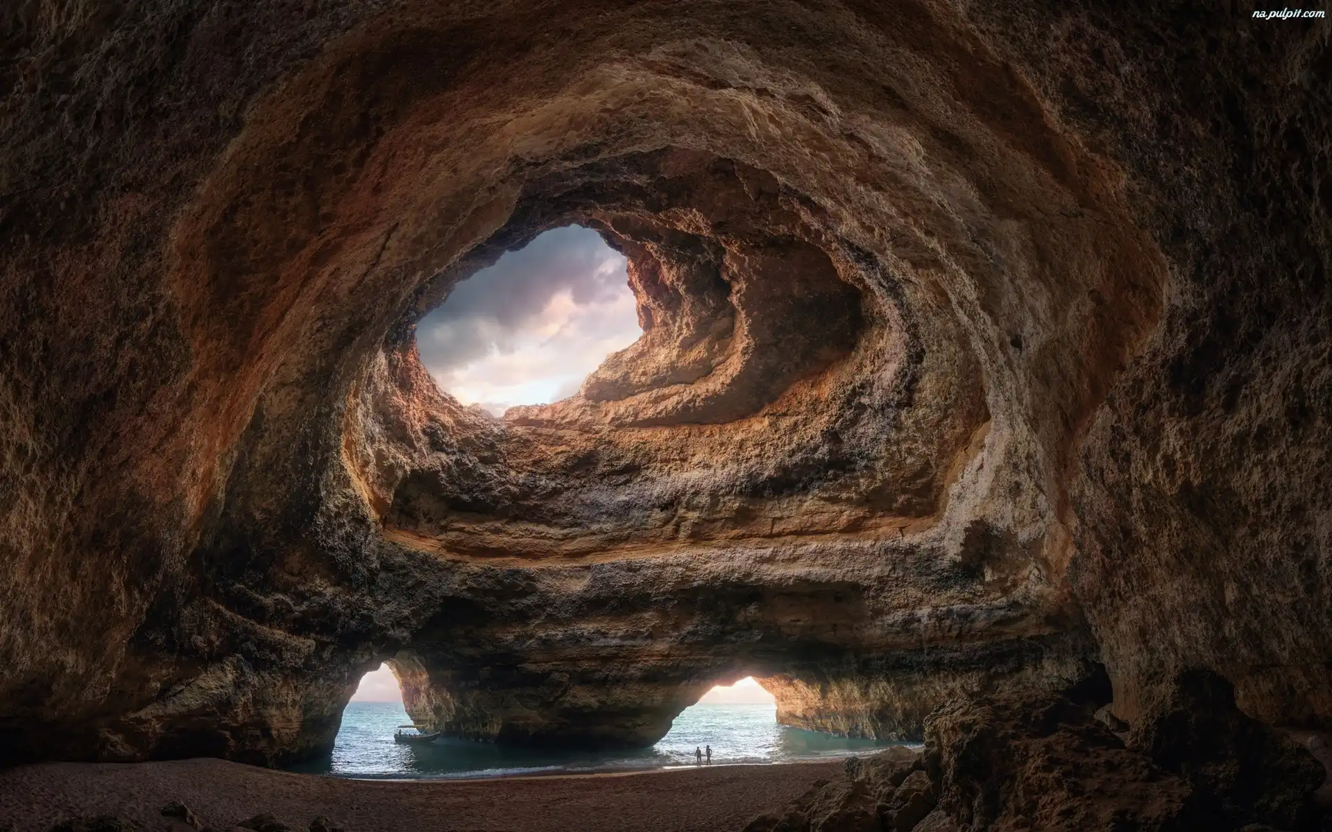 Benagil, Grota, Skała, Algarve, Portugalia, Morze, Jaskinia, Niebo Na Pulpit
