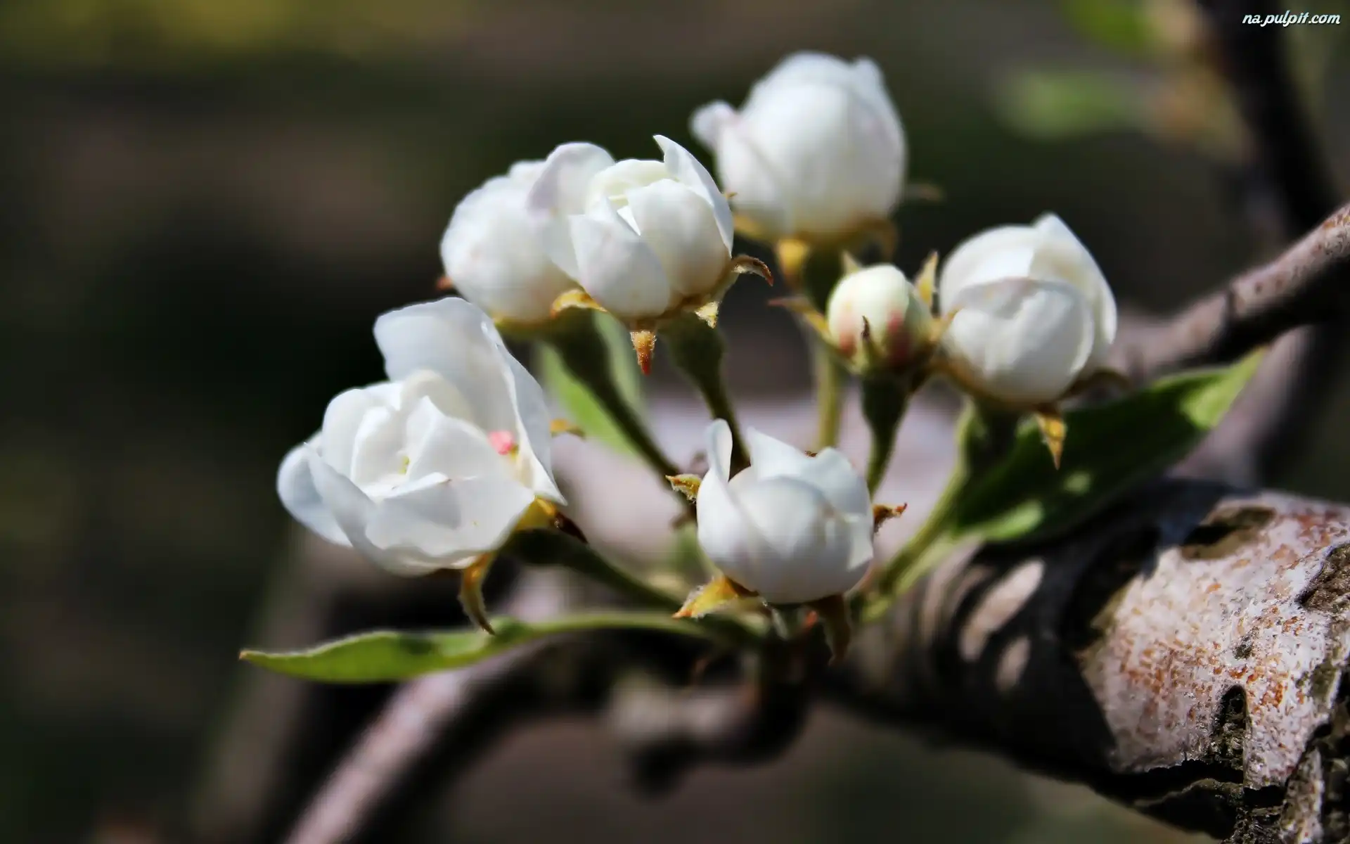 Grusza, Kwitnąca, Białe Kwiaty, Gałąź