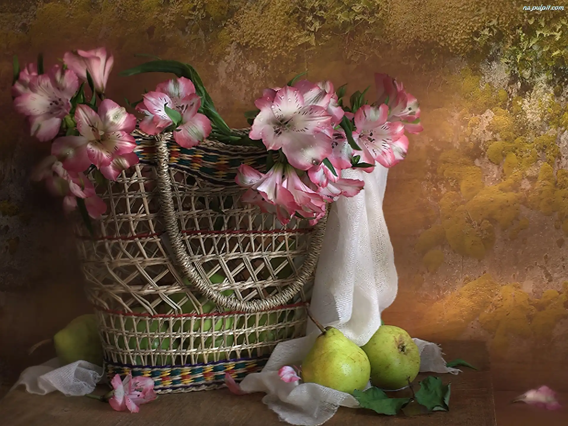 Gruszki, Kwiatów, Różowych, Bukiet, Kosz