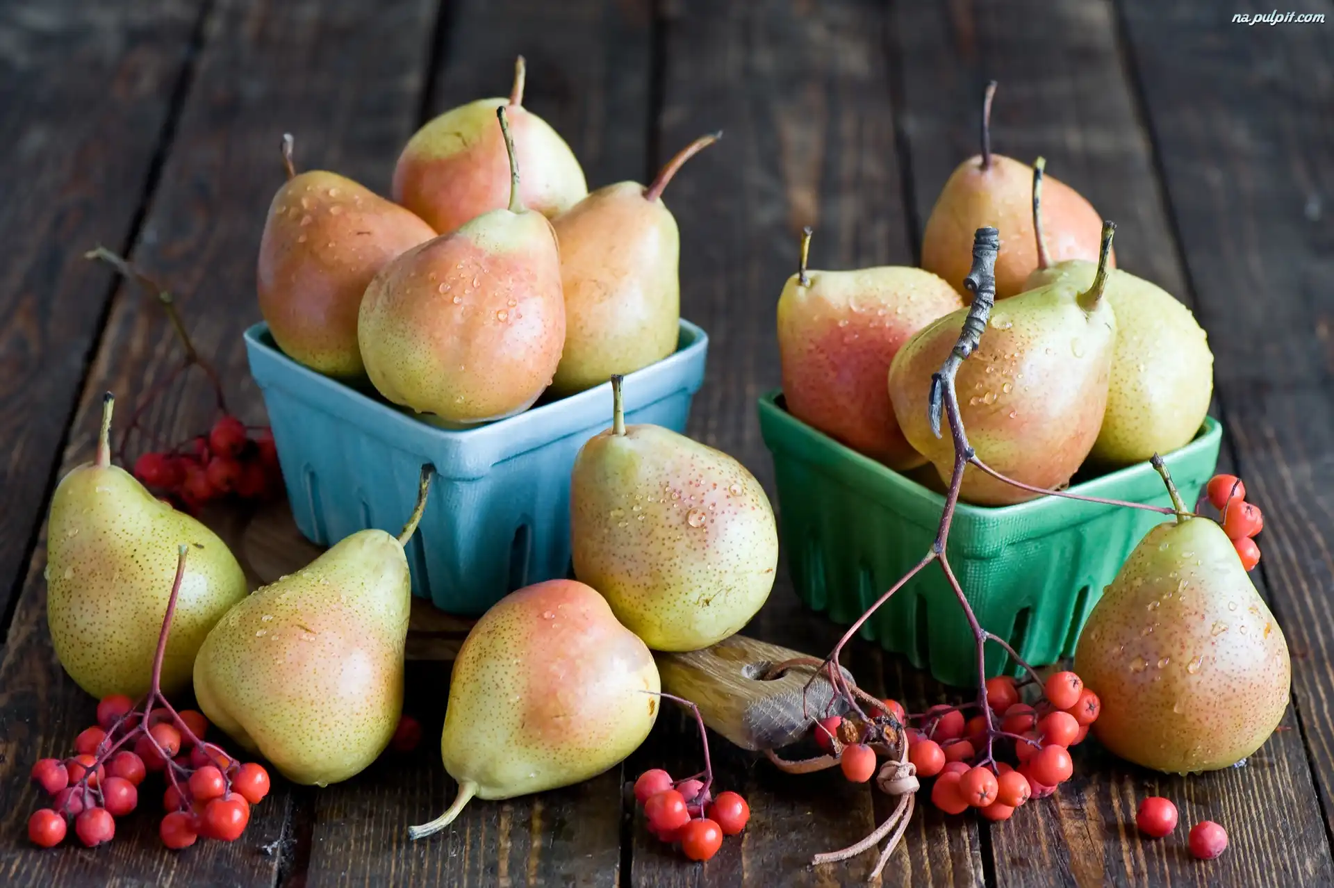 Gruszki, Wody, Pojemniki, Jarzębina, Kompozycja, Krople Na Pulpit