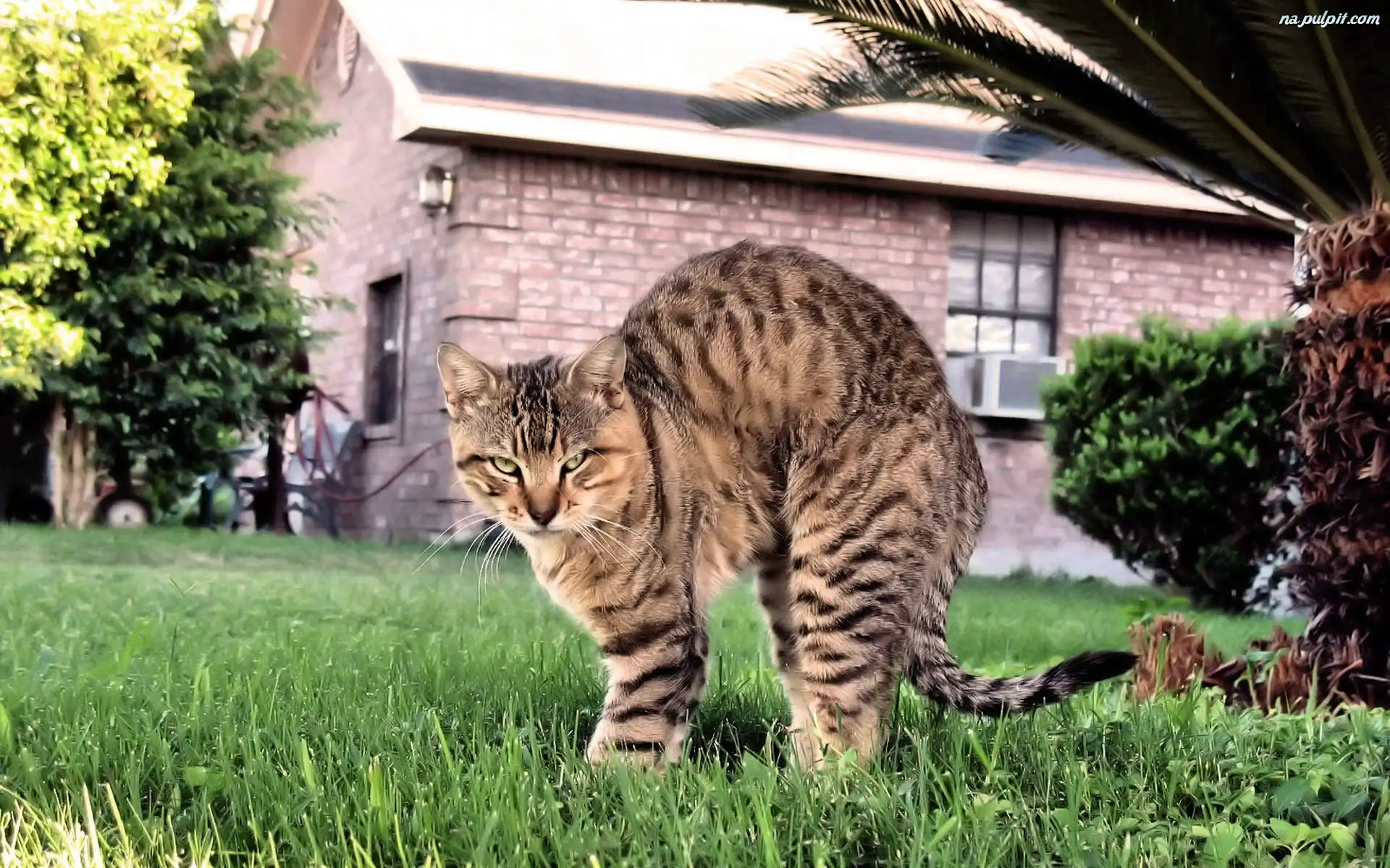 Grzbiet, Ogródek, Domek, Nastroszony, Kot, Agresja Na Pulpit