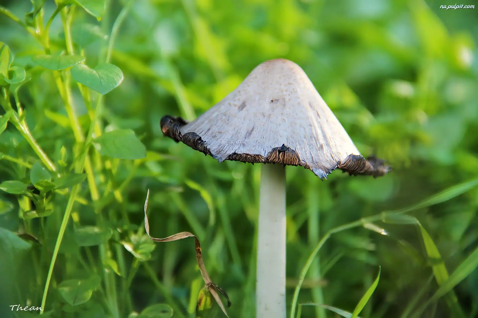 Grzyb, Nóżka, Trawa, Podwinięty, Biały, Kapelusz Na Pulpit