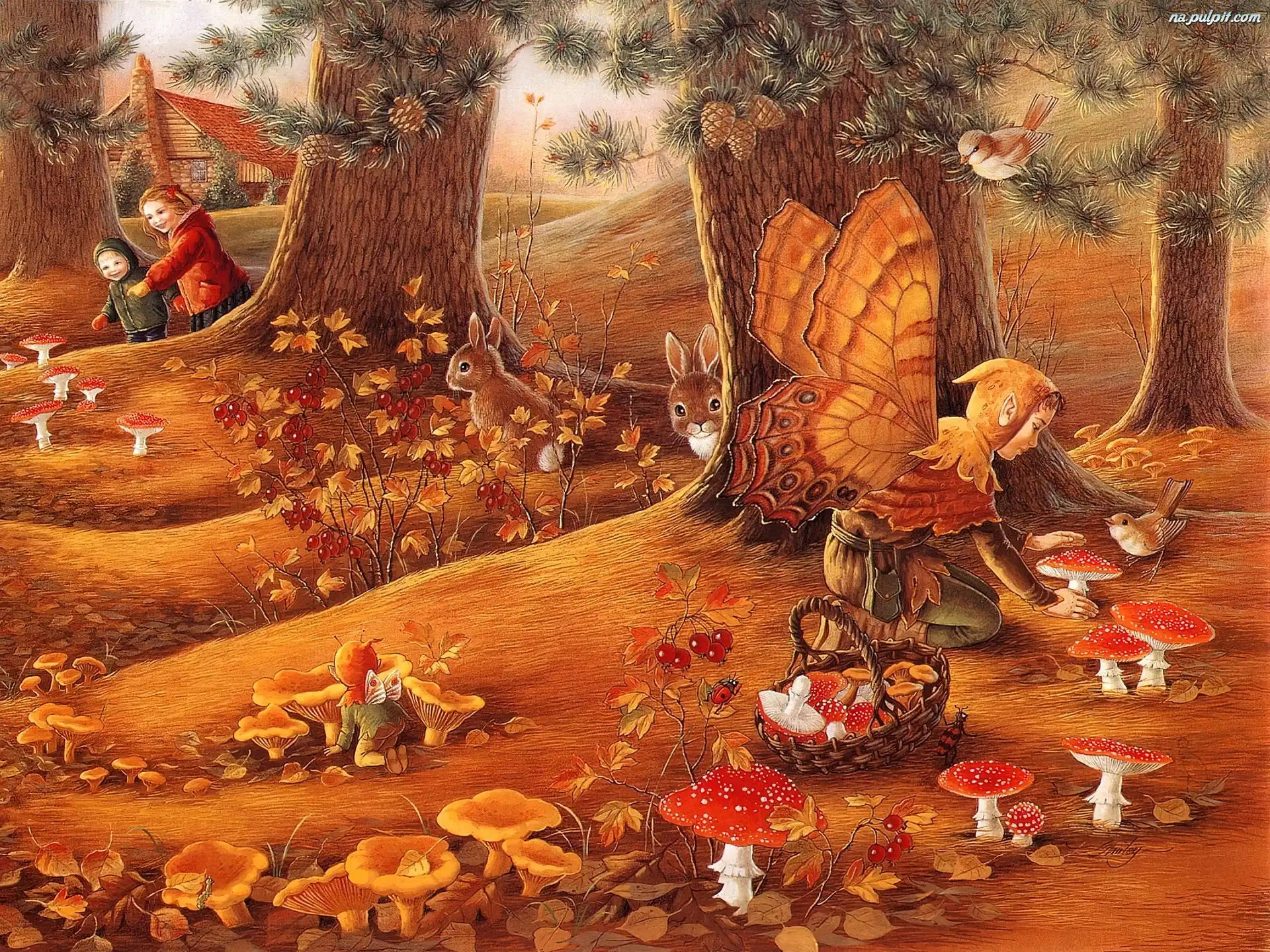Grzyby, Dzieci, Kraina, Bajkowa, ZajÄ…ce Na Pulpit